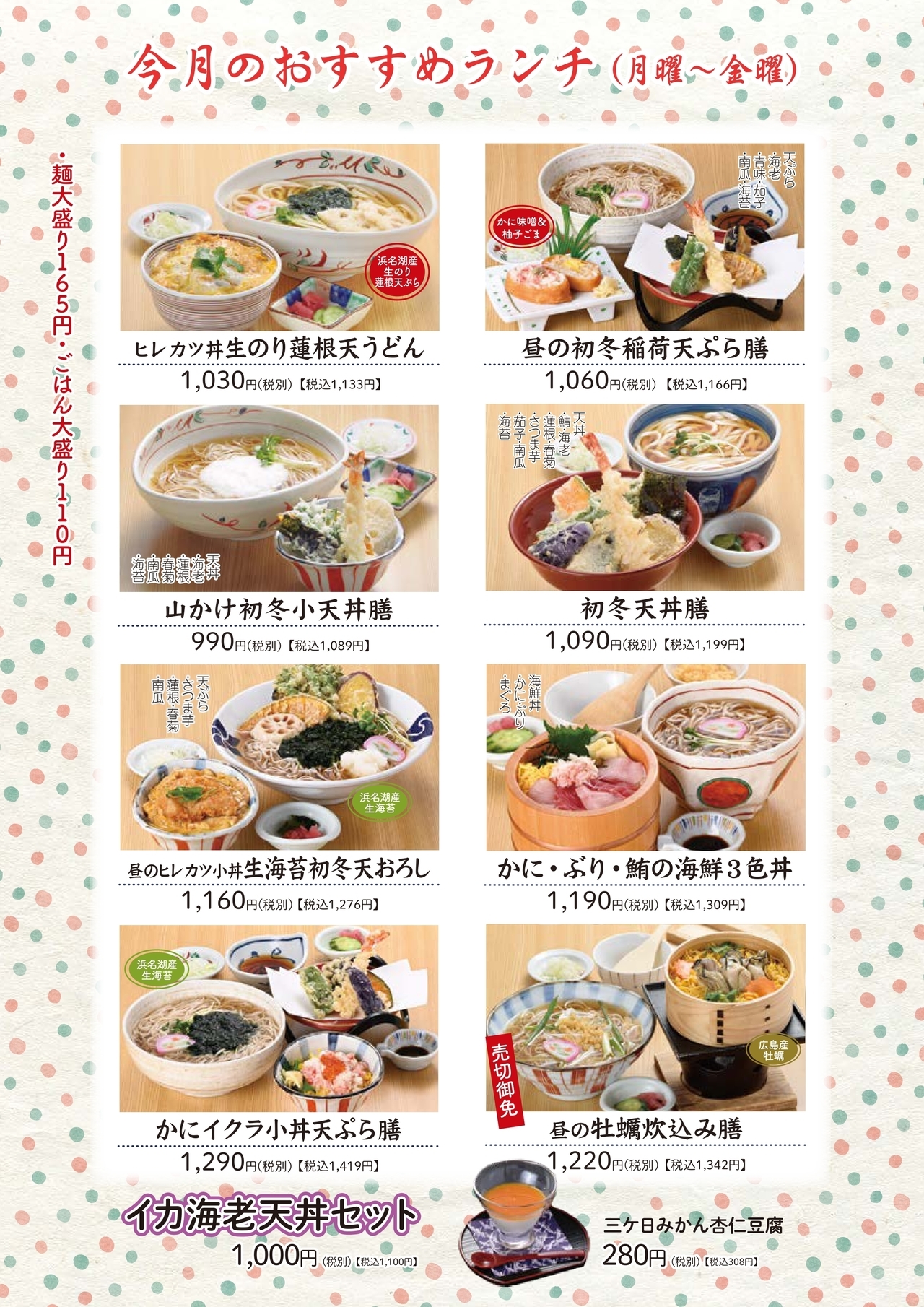 ■実施時間 ●月曜~金曜:11時~16時まで ●土、日曜、祭日:ランチメニューはございません。