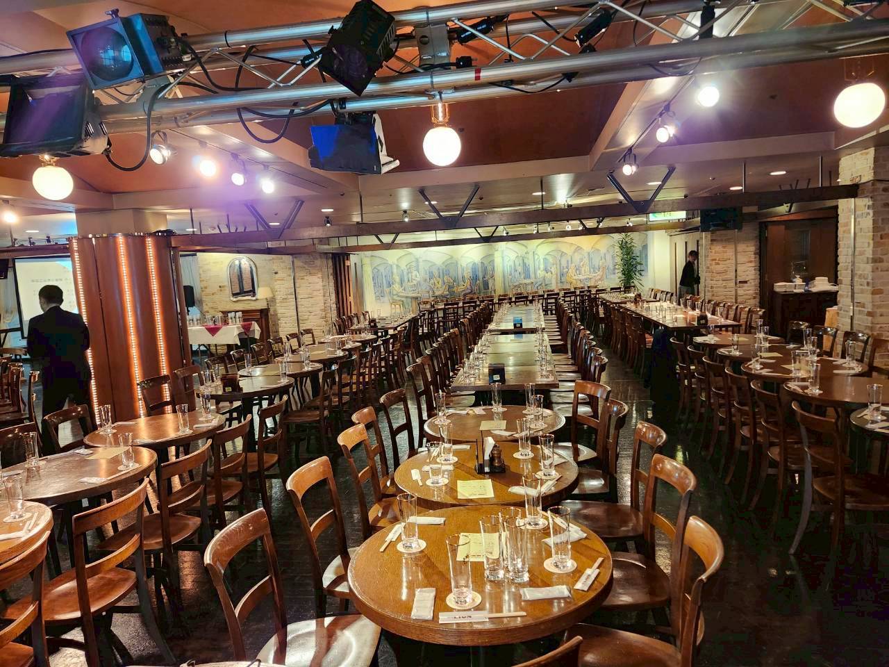 18:30 夜の部がスタート、同じく7店舗から100名以上のスタッフが参加、会場は1つのホールで進行していきます。